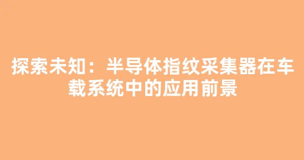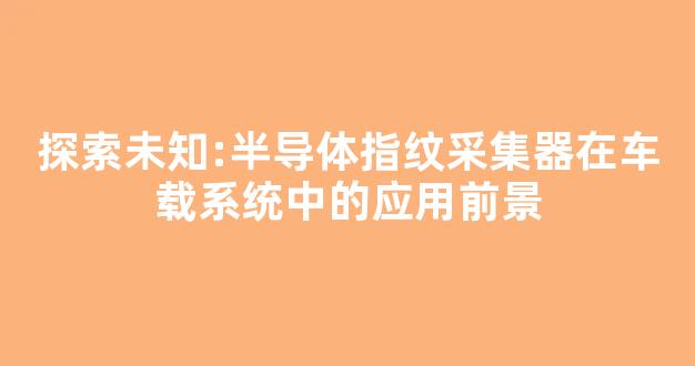 引言随着科技的不断进步,半导体指纹采集器已经成为车载系统中的关键技术之一。其应用前景备受瞩目,对于汽车安全、智能驾驶以及用户体验都具有重要意义。本文将深入探讨半导体指纹采集器在车载系统中的应用前景,分析其发展趋势和潜在影响。